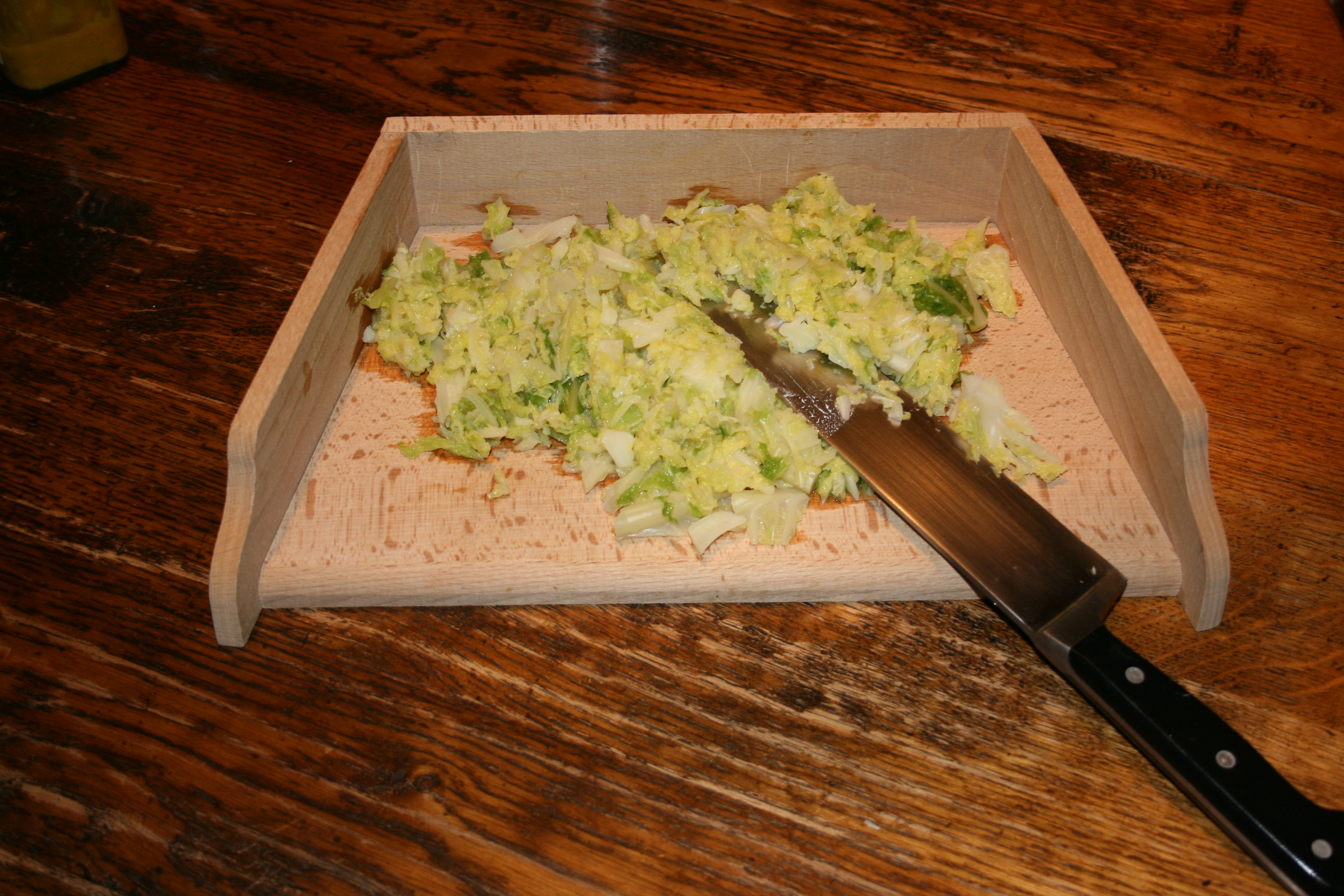 Het recept is heel gemakkelijk, maar vraagt wel een beetje tijd. In tegenstelling tot moderne keukens, had mijn moeder geen bijzonder keukengereedschap. Voor dit gerecht had ze evenwel een specifieke plank die ze gebruikte om de gekookte savooiekool fijn te hakken, alvorens deze onder de aardappelpuree te mengen. Het hakken gebeurde met een groot mes.